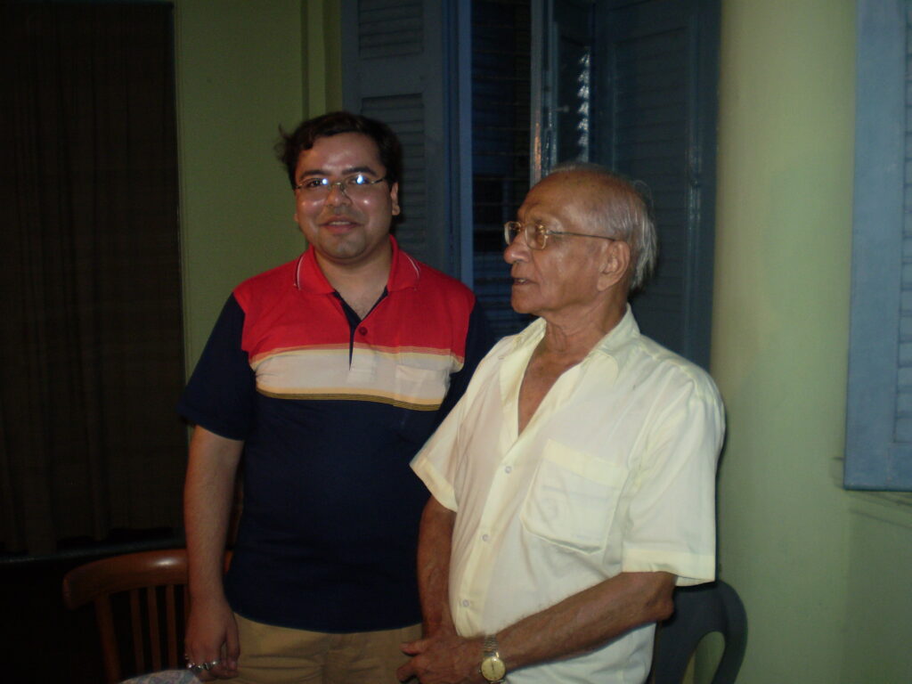 ‘Dilip-da used to organize musical soirees at his residence in Trésor House. Since I had nothing to do with music and had a restless nature, I would look for opportunities to escape unnoticed. One evening, there was a soiree at Dilip-da’s place. I had gone to his residence to borrow a novel of Somerset Maugham from his library but as I was about to sneak out, I found that the programme had started already. So I had to wait in the adjacent room. After two hours, the soiree ended. When everyone dispersed, Dilip-da saw me and said to Rani-di: “Look, Rani! What a wonderful day it is for me! Babu is here, listening to my songs.” And I blurted out: “No, I came to borrow this book, not to listen to your songs!”’ And he laughed aloud while recalling this incident.