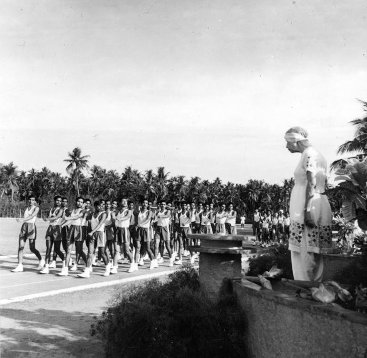 In those days at 8 p.m. the Mother used to conduct a collective meditation with the inmates of the Ashram. At times she would turn up late. Some of the members would ask Aniruddha—who would be doing his homework while waiting for her—to inform them as soon as the Mother arrived. So when the Mother came, Aniruddha would run out, take his bicycle and go round the four corners of the Ashram main building announcing that the Mother had come. At times the Mother would come at 10 or 11 or even at midnight for this meditation. And if she was still late, Sri Aurobindo would send word asking the inmates to go back to their respective houses. “The record delay took place when the Mother once came at 3 a.m.” recalled Aniruddha.