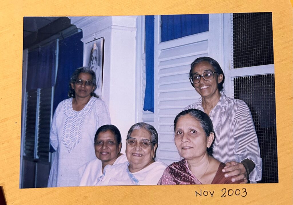 With her elder sister Sudha Rai (centre) and Sumitra Guha, mother of Jishnu Guha, in 2025.