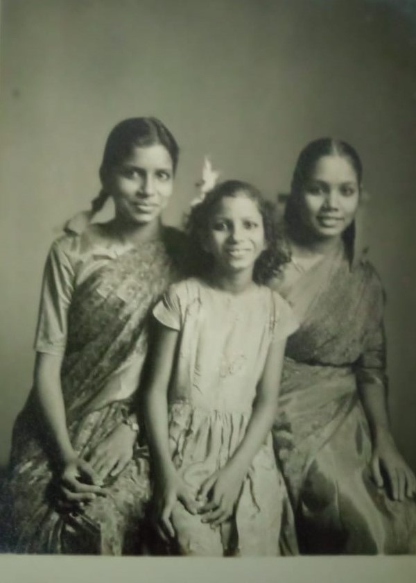 Indu Rai in the middle with her sisters.
