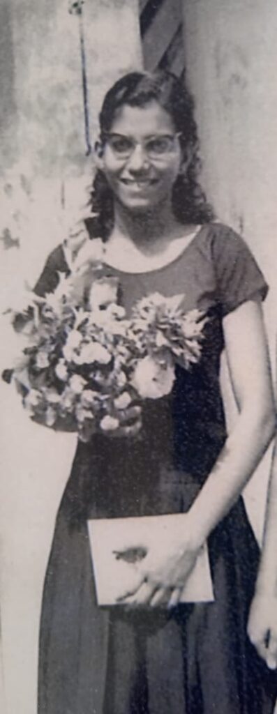 Indu-di became a teacher of English at Progress level, after her education in the Ashram school. She also helped Leena Dowsett at the Sri Aurobindo Ashram Library lending section and later became the head of that section.