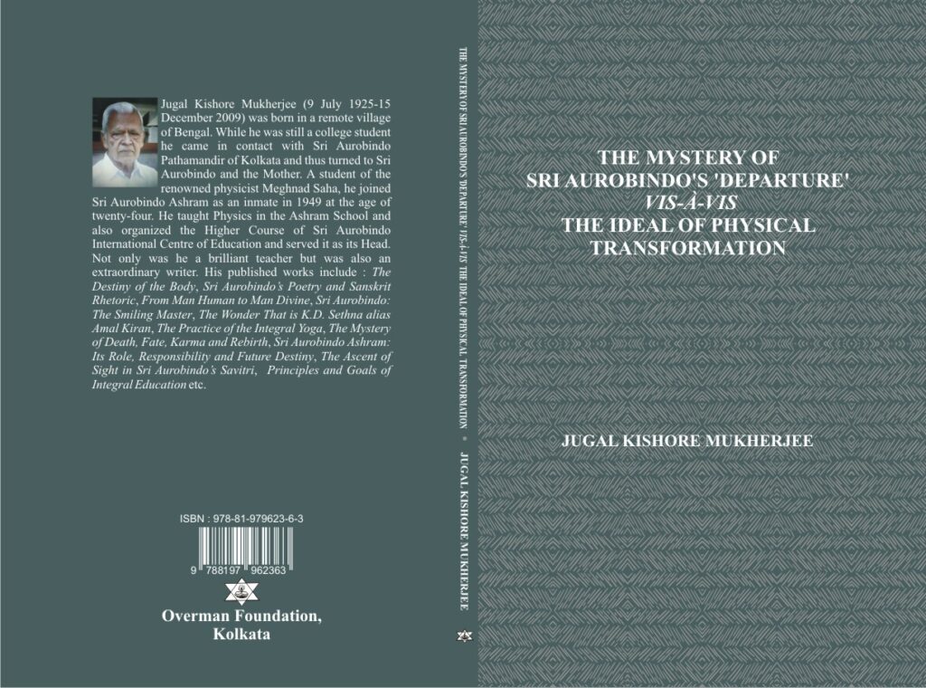 In the book, The Mystery of Sri Aurobindo’s ‘Departure’ vis-à-vis The Ideal of Physical Transformation (price: Rs. 220), Jugal Kishore Mukherjee, who was one of the finest exponents of Aurobindonian philosophy and a writer of rare insight, has tried to solve the mystery of Sri Aurobindo’s ‘departure’ analyzing the actual words of Sri Aurobindo as well as those of the Mother pronounced on different occasions.