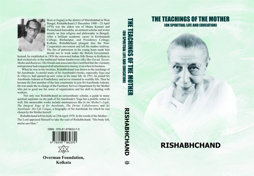 3 December 2025 marked the 125th birth anniversary of Rishabhchand.  To commemorate the said occasion and as a humble homage to this great scholar and sadhak, Overman Foundation Trust has published The Teachings of the Mother (an anthology of fifteen essays providing a detailed analysis of the Mother’s scheme of education and guidance to develop one’s inner, spiritual life) and A New Light for a New Life (a compilation of thirty-five essays written on Sri Aurobindo and the Mother vis-à-vis yoga, politics and cultural issues).